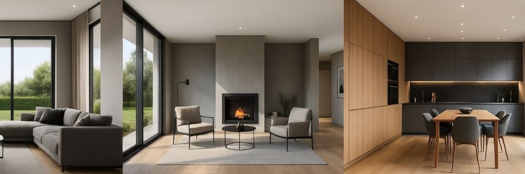 10–20 mm drywall, ecological plaster, aerogel-reinforced rock wool/styrofoam insulation. Modular electrical and plumbing installation.